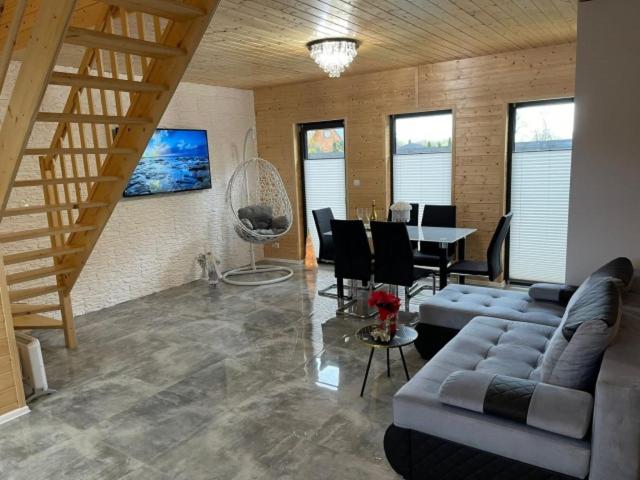 Dom wakacyjny. This holiday home is comprised of 1 living room, 3 separate bedrooms and 2 bathrooms with a shower and a hairdryer. Featuring a terrace with garden views, this holiday home also offers a tea and coffee maker and a flat-screen TV. The unit offers 5 beds. Dom wakacyjny - 10 osobowy. Powierzchnia pokoju ok.: 70 mkw.